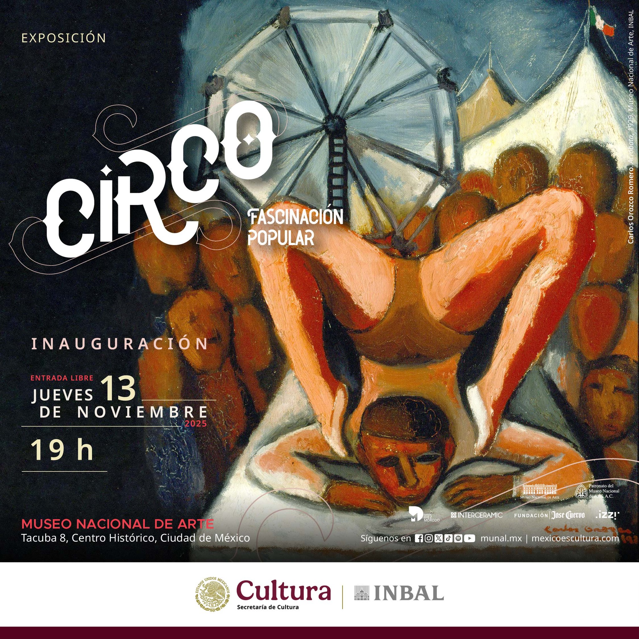 El Museo Nacional de Arte (MUNAL), presenta Circo. Fascinación popular, exposición que analiza cómo el arte circense, consolidado en la sociedad de finales del siglo XIX y principios del XX, fue resignificado en las artes visuales mexicanas como un territorio simbólico en el que convergen el riesgo, la fragilidad, la alegría y lo marginal.